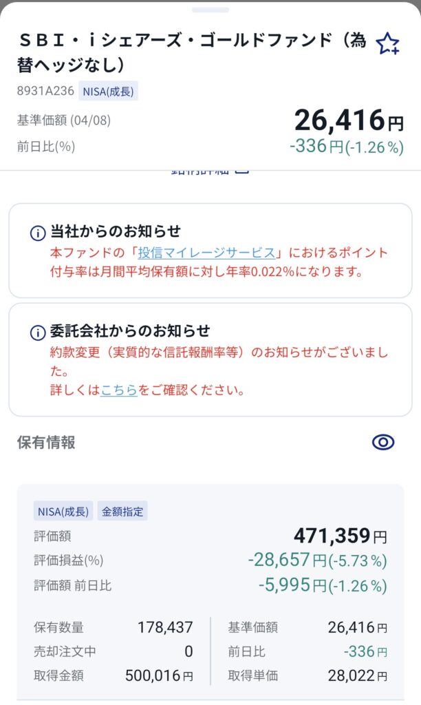 金(ゴールド)が下落しましたが、今回は買い増しはしませんでした。